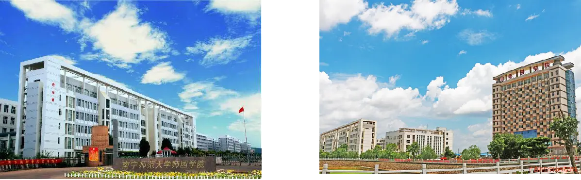 南宁师范大学师园学院(官网:http://www.gxsy.edu.cn/)坐落于广西壮族自治区首府南宁市,靠近吴圩国际机场,占地面积 22 万平方米,是2002年4月经广西壮族自治区教育厅批准、2004年2月国家教育部重新确认,由南宁师范大学联合社会力量举办的一所普通全日制本科院校(独立学院),具有学士学位授予权,纳入国家统一招生计划。